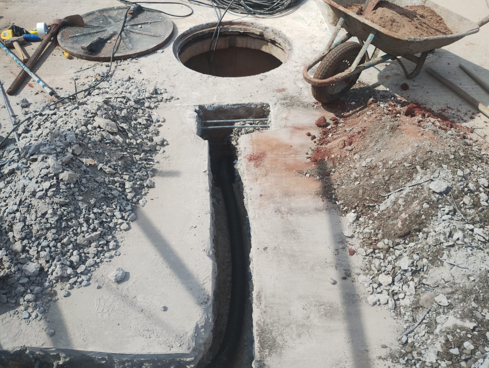 Diversos serviços na construção civil, como execução de guias e sarjetas, calçadas, demolições, furos em laje e parede de concreto, escavações em geral, instalação de guarda-corpo, Execução e instalação de tampas metálicas, grades tipo “SELMEC”, grades de fibra, etc.